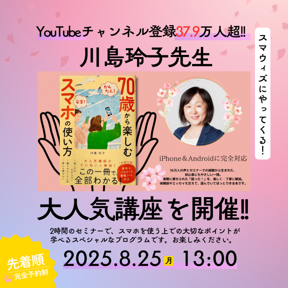 タブレットパソコープのiPad講座、スマートフォン講座は、80代、90代の方も数多く受講されています。