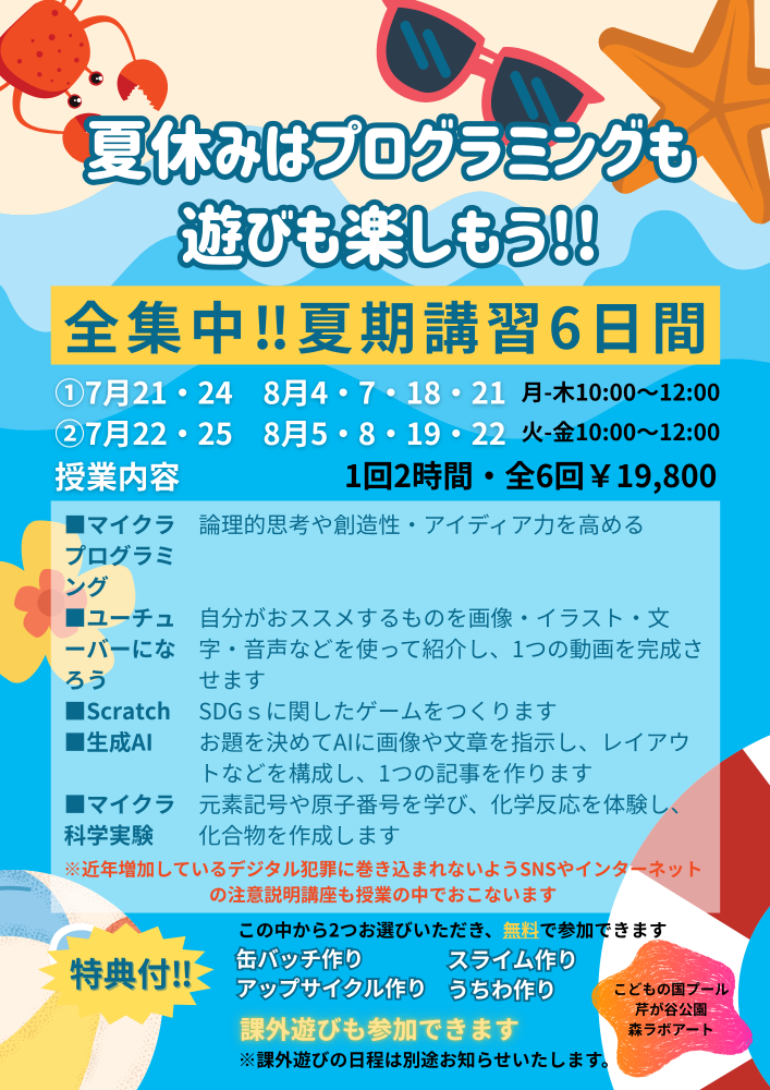 全集中!!夏期講習6日間 夏休みを全力で楽しもう!プログラミングも遊びも夏休みだからできることをみんなで一緒に学んでいこう!