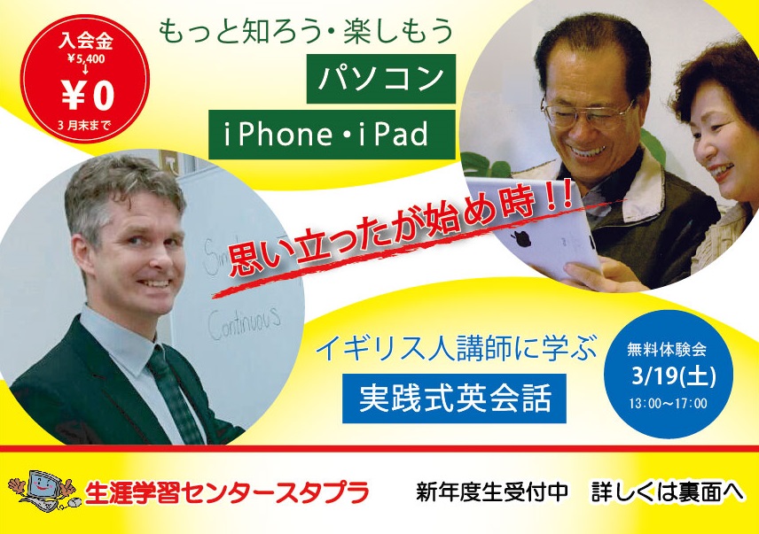 パソコン・iPad無料体験会は4月28日まで開催します。