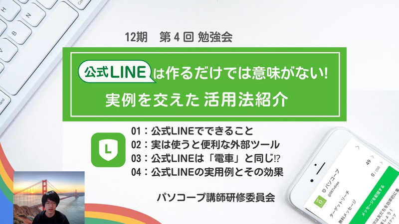 5月25日(日)9:15~、パソコープ会員教室向け勉強会「「公式LINEは作るだけでは意味がない!実例を交えた活用法紹介」」をZoomオンラインにて実施しました。