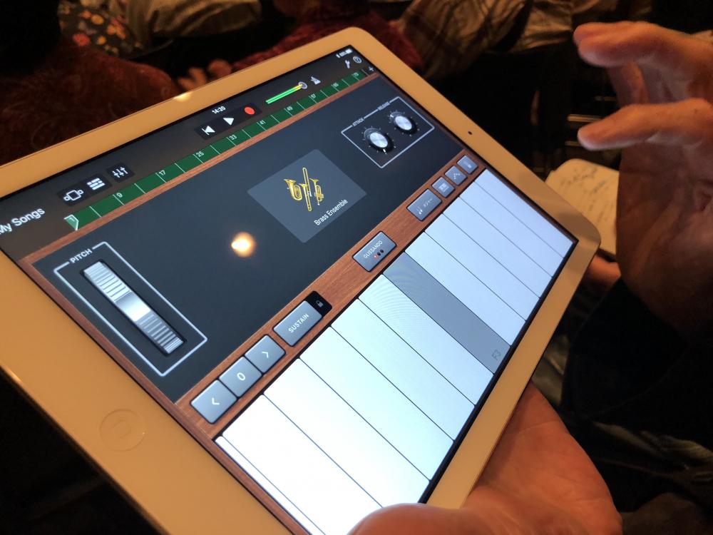コンサートの中盤には「GarageBand体験コーナー」を設けました。