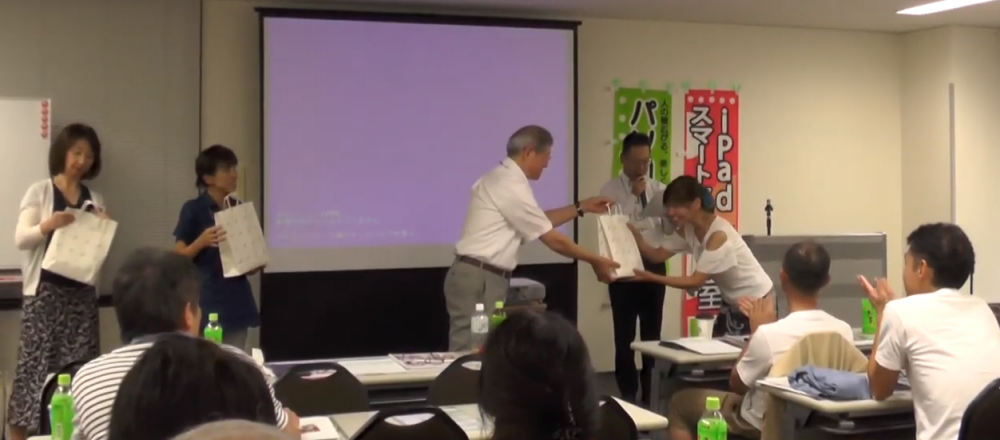 参加賞は勉強会当日に勉強会に出席した教室オーナーに生徒イベント委員会メンバーから直接お渡ししました。
