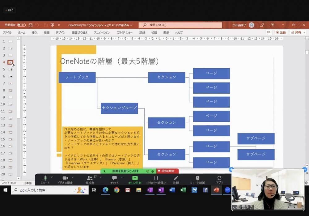 11月27日(日)9:15、パソコープ会員教室の講師向けOnenote勉強会をZoomオンラインにて実施しました。