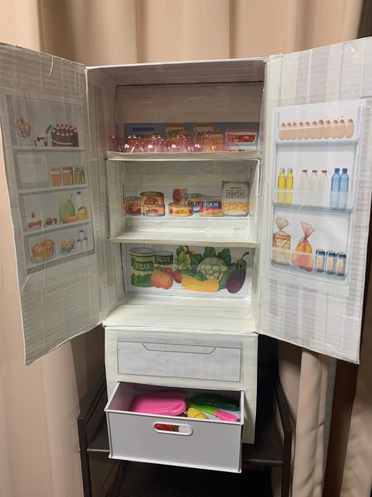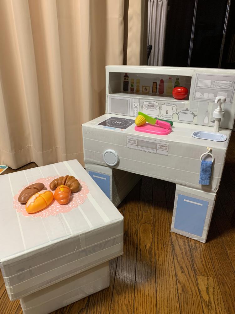 初孫用に作ったダンボール工作です。キッチンセットや滑り台を手作りしました。