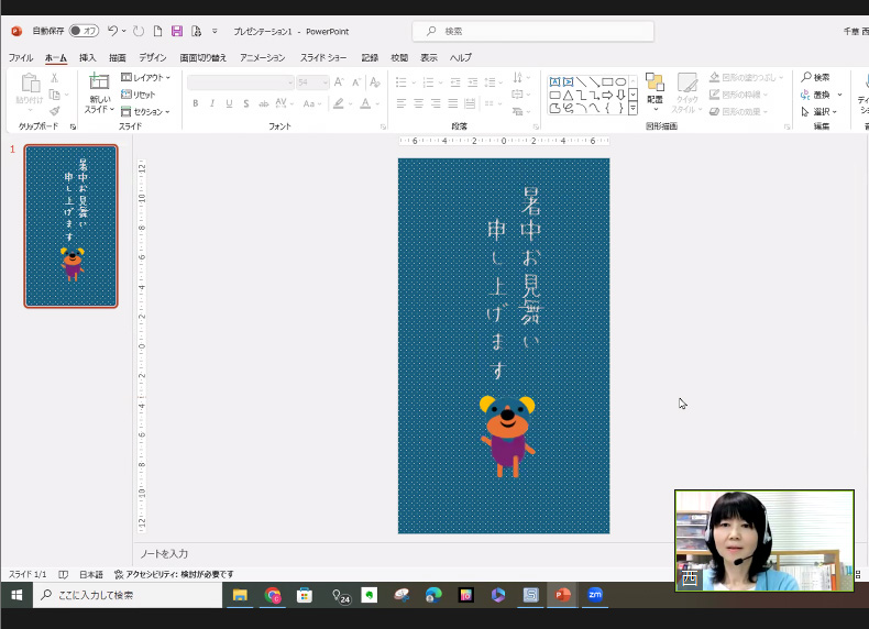図形を組み合わせたクマちゃんをアニメ化する方法や、PowerPointを使って暑中お見舞いムービーの作り方。