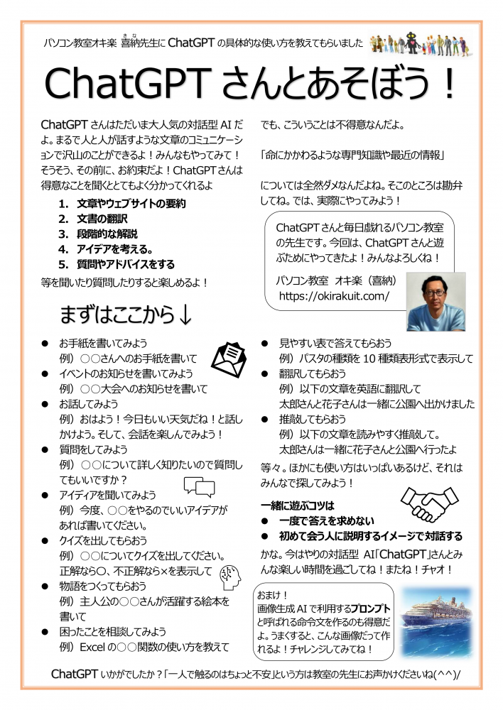 「ChatGPTさんとあそぼう!」2023年5月号の会員向け月刊情報誌”パソコープ広場”より