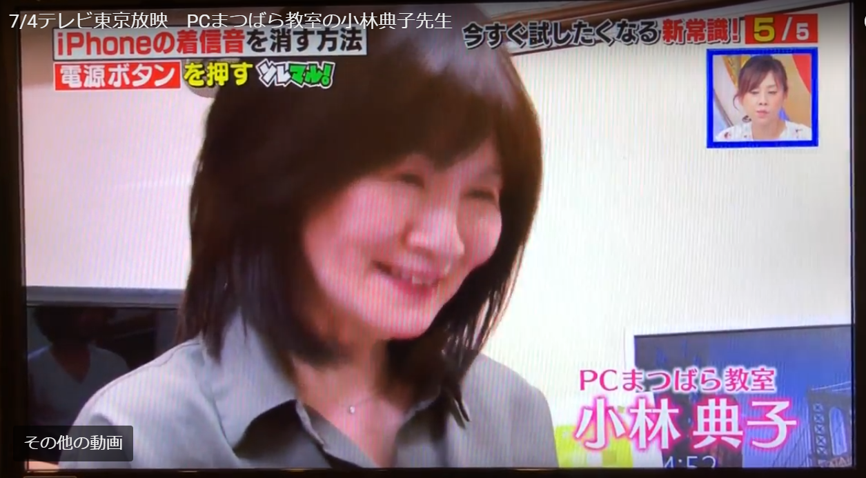 7月4日放映のテレビ東京「ソレダメ! ~あなたの常識は非常識!?~」にPCまつばら教室の小林典子先生が登場!
