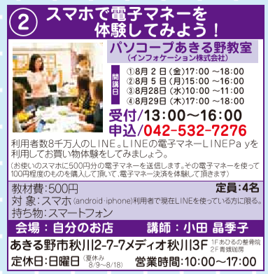 もう一つの講座は、いま話題の「LINE Payで電子マネー体験」です。