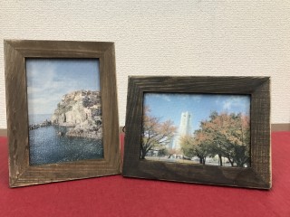 ご自分で撮影したお気に入りの写真を、レースにアイロンプリントして、素敵な絵画風写真を2種類作ります。額縁2個付きです。