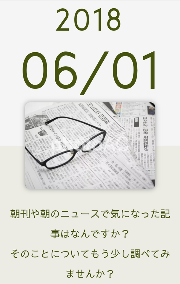 今朝の課題は「朝刊や朝のニュースで気になった記事は何ですか?そのことについてもう少し調べてみませんか?まだまだ知らないことを知りたいですよね。」でした。