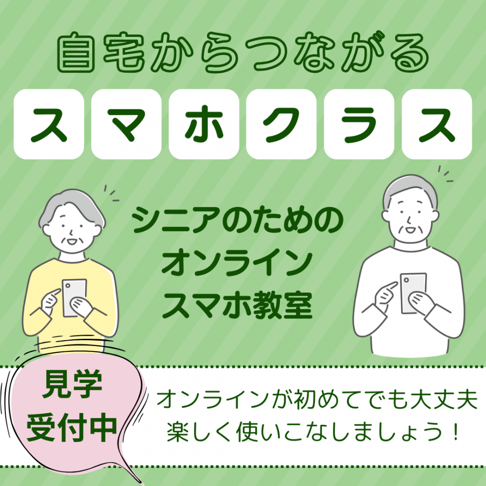 自宅からつながるシニアのスマホ初心者クラス 生徒さま募集中