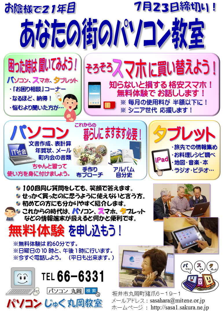 坂井市丸岡町猪爪のパソコンじゅく丸岡教室 |
