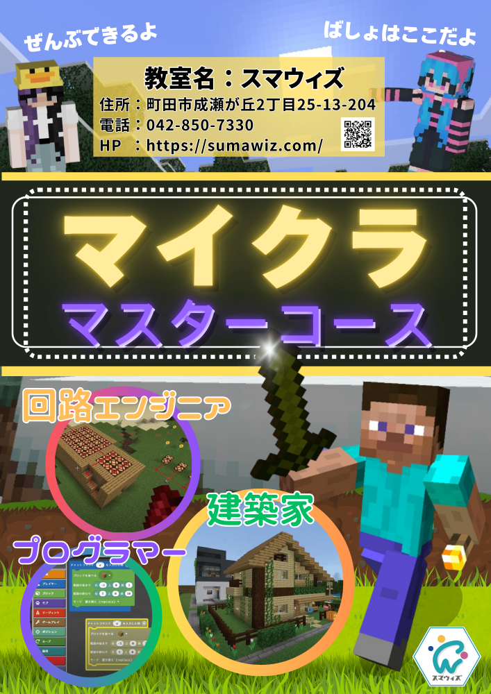 開催期間:2024-09-01~2025-09-01マイクラマスターコースがついに授業で追加されました!