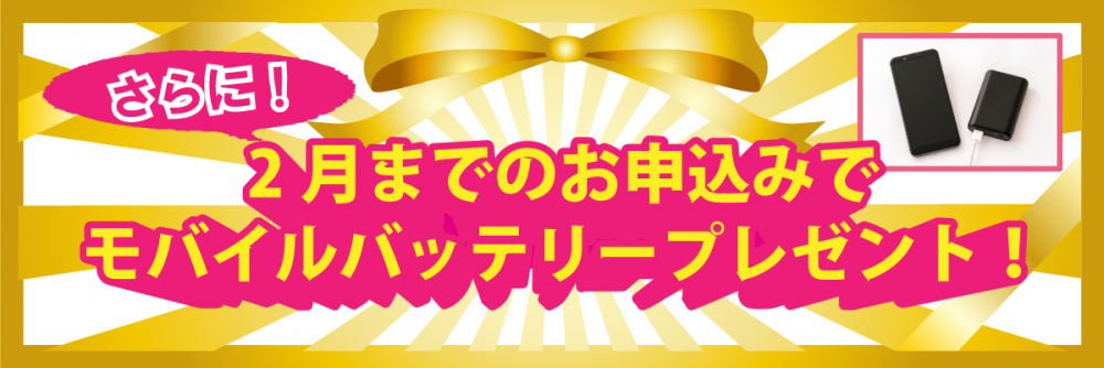 また、このページを見たからのご連絡で2月までのプレゼントのモバイルバッテリーもプレゼントいたします!