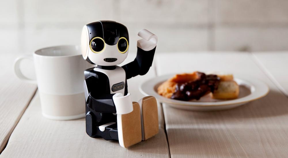 ロボホンは持ち運びできるコミュニケーションロボットです。