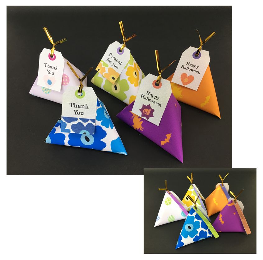 コロンとした三角形がかわいいテトラ型のラッピングギフトを作りましょう。