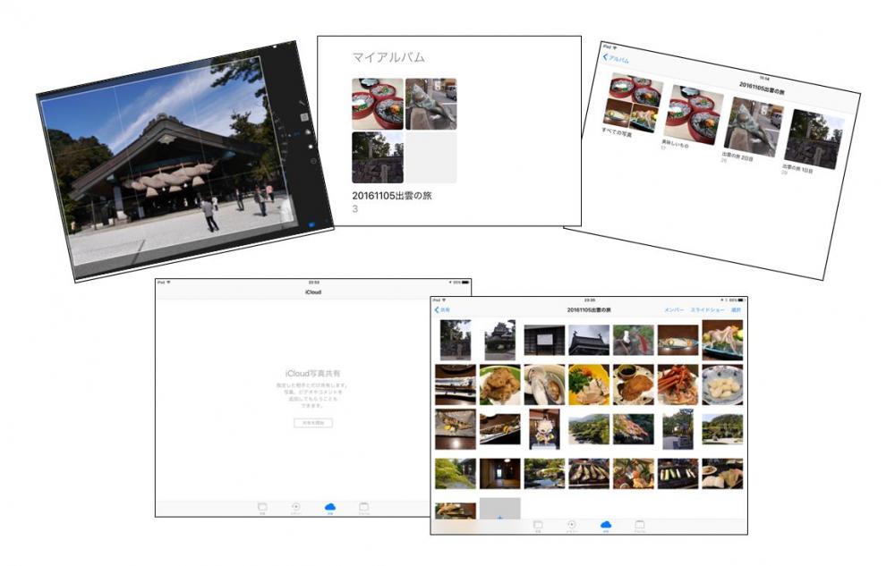 写真アプリを使って、大切な旅の思い出を残しましょう。撮影した写真から不要な写真を削除したり、簡単な補正をしたりします。その後、アルバムにフォルダを作り、その中にアルバムを作って写真を整理します。また、iCloud共有アルバムを作って友人を招待し、お互いの写真やビデオを追加して共有します。