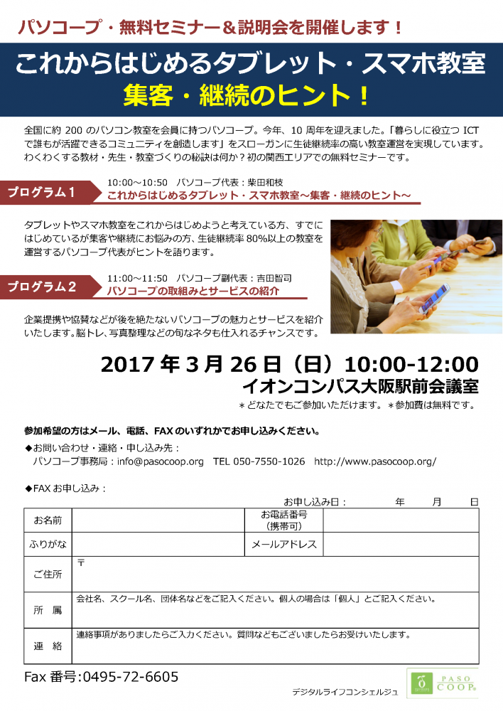 パソコープ・無料セミナー&説明会を大阪で開催します!