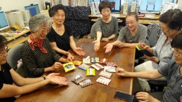 【3】最近使ったパソコープのテキストは? エンジョイパックの評判はとても高いです。最近では、「折るだけでできるぽち袋 封筒タイプ」「好きな柄で作るコサージュ」「アイロンプリント用紙で作るティッシュケース」どれも、皆さん夢中で作られています。 コサージュは、自分の持っている服の色に合わせて作り、ちょっとした時に実際につけてお出かけになる方がいらっしゃいました。 ティッシュケースは想像以上に出来が良く好評です。日常使いの方も多いです。1回限りの授業にはもったいなく、ほかの物にも応用したいところです。 カレンダーは、年末恒例の授業になっておりますが、ワードではなく、ラベルマイティで作っています。