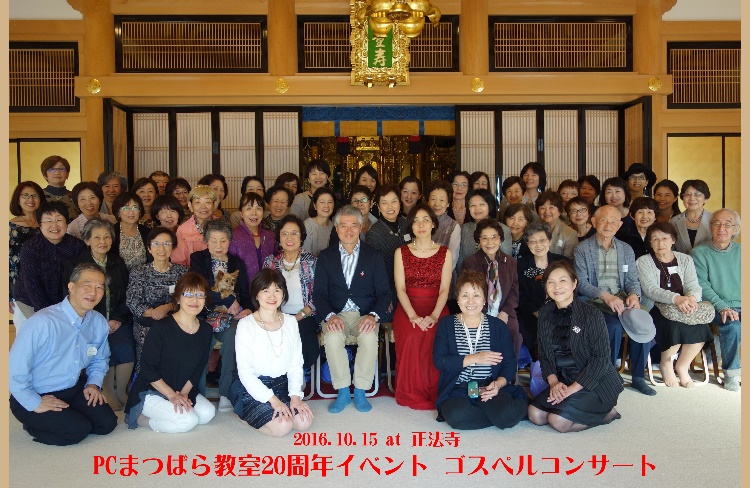 去年20周年記念イベントで、ゴスペルシンガーとボサノバのギタリストのお二人の異色コンビによるコンサートを開催しました。 場所は、生徒さんのお宅である浄土真宗のお寺。本堂に響き渡るハリのあるボーカルと心地よいギターの音色に、しばし日常を忘れ、生徒さんとともに酔いしれたひとときでした。