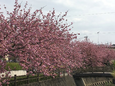 窓から眺めると、目の前に小さな川があり川沿いに遊歩道と八重桜並木があり、人や犬や鳥たちの憩いの場所になっています。生徒の皆さんは車でお越しになります。 駐車場の確保に大変悩みましたが、多くの方々のご理解とご協力で難関クリア!車20台分あります。