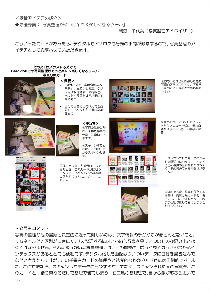 最優秀賞:「写真整理がぐっと楽に&楽しくなるツール」網野 千代美(写真整理アドバイザー)