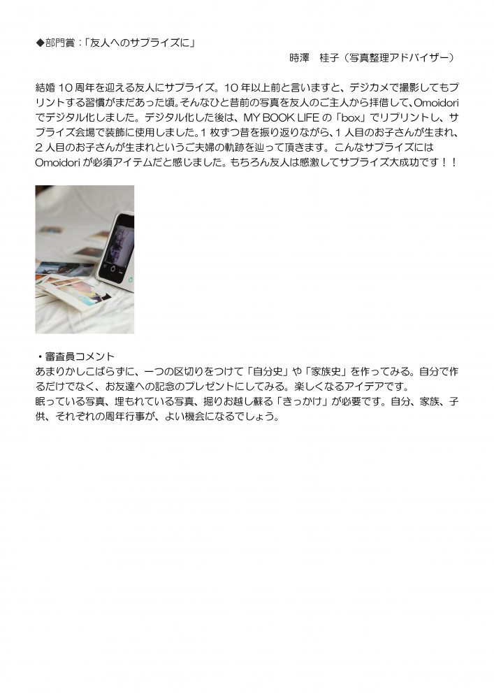 「友人のサプライズに」時澤 桂子(写真整理アドバイザー)