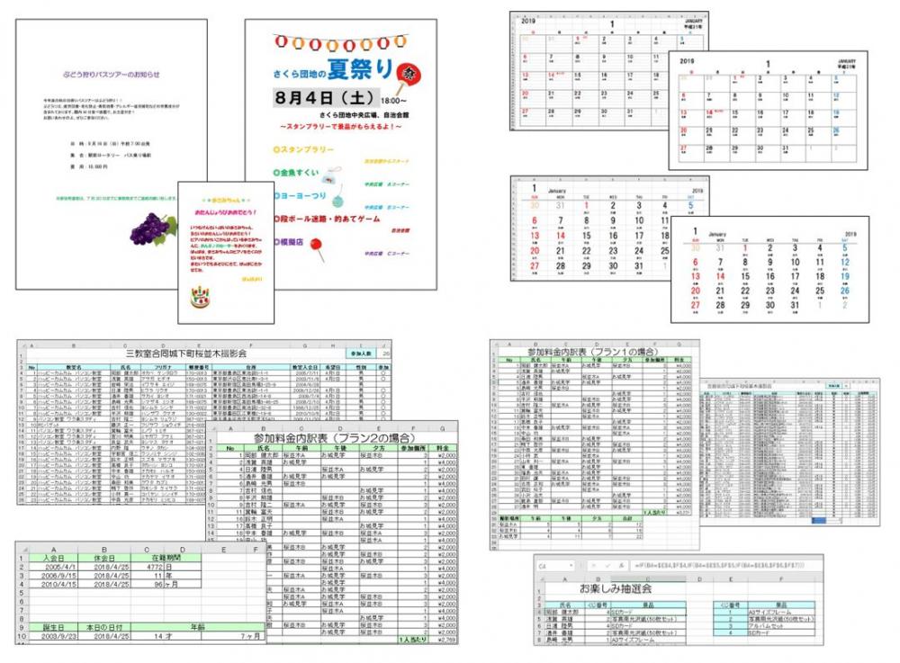 基本的なお知らせ文書やハガキを作りましょう。完成例は全部で3例あります。