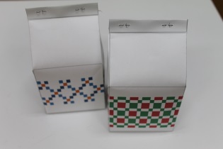それぞれ手作りのキューブのギフトボックスにチョコレート菓子をいれてプレゼントしています。