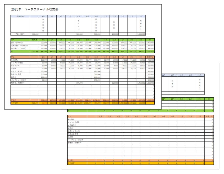 それを元にひな型を作成しておくと、翌年の作業が楽になります。また、大きい表の見方やSheetの扱いを学びます。
