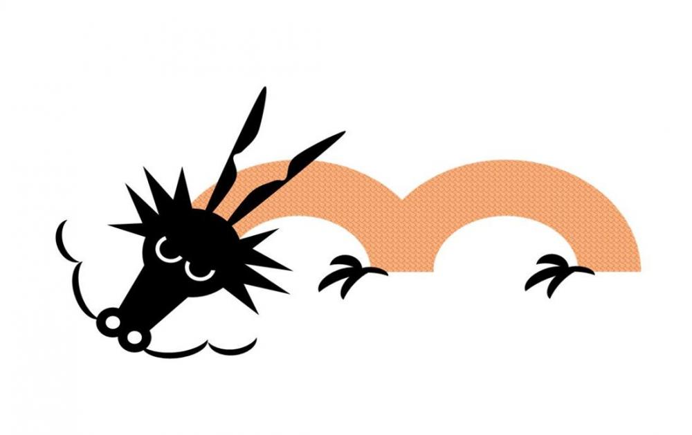 下絵用の辰のイラストをヘッダーに入れてお手本にしながら、いろいろな図形を組み合わせて「辰のイラスト」を仕上げていきます。