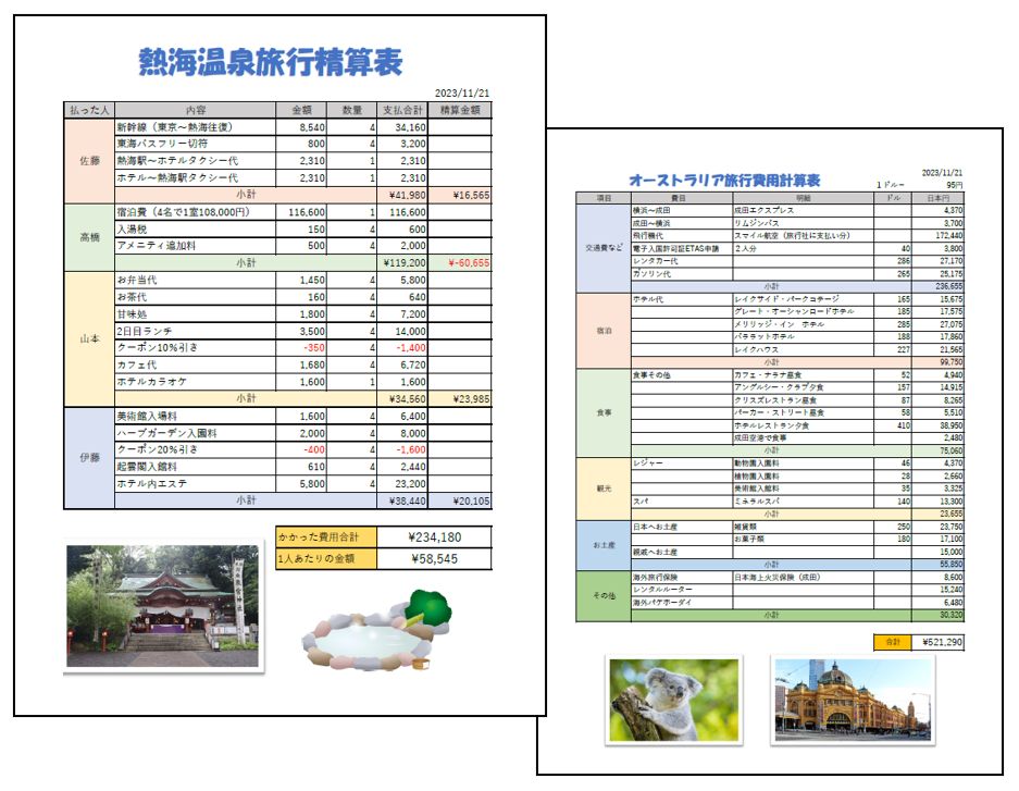 作成した精算表は、A4用紙1枚に収まるように印刷し、グループのメンバーに配布します。