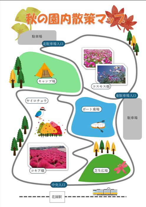 Wordの図形機能を使用して、秋の園内マップを作成しましょう。
