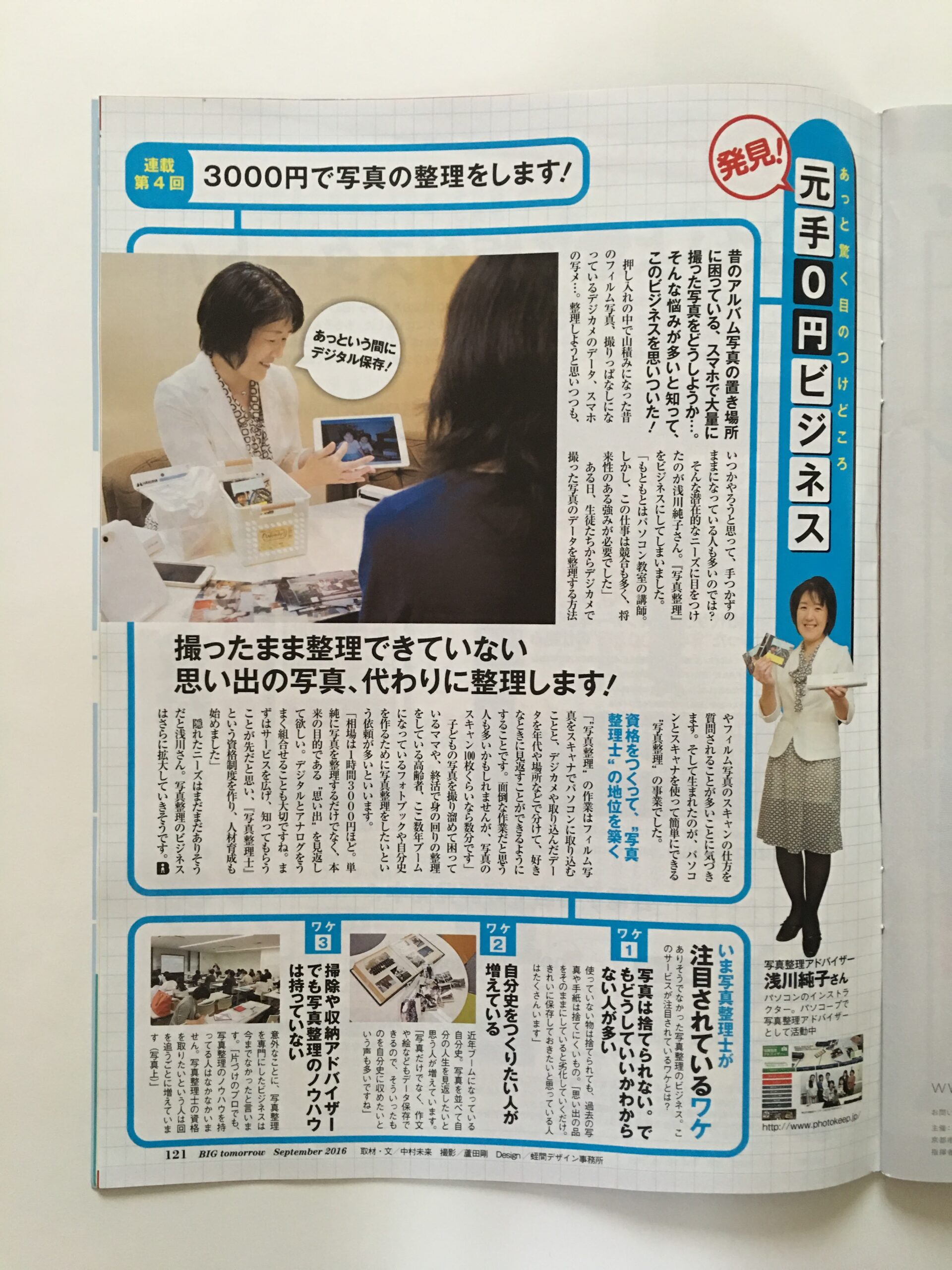 パソコープ 写真整理アドバイザーの記事がBig tomorrow 9月号に掲載されました