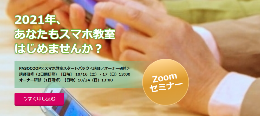 「スマホ教室開業支援講座」のページ
